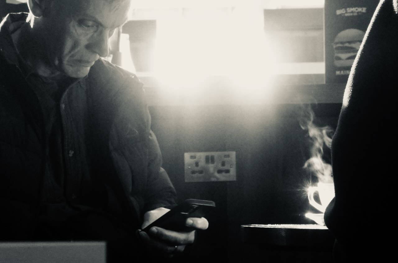 I went for this shot because of the illuminated cup of hot beverage to the right, and I guess it works, but yes, I would like to take out the plug sockets.