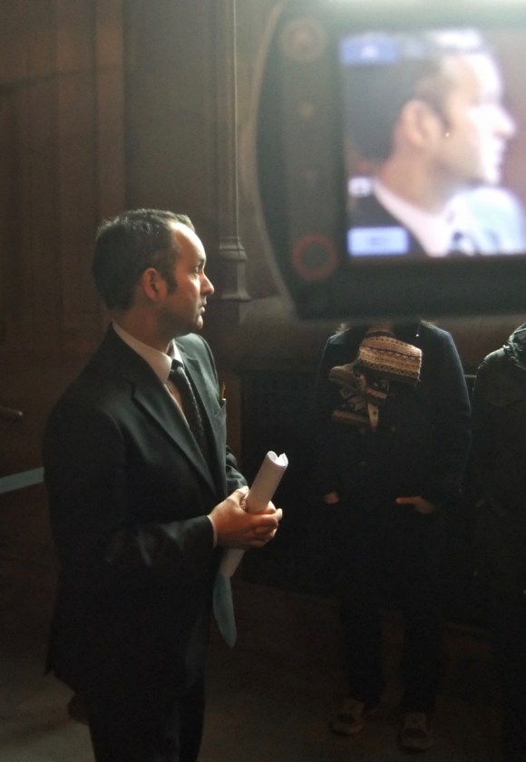 James is an archivist at the John Rylands Library, Deansgate, Manchester, a historic public Victorian library in the city centre. I brought my Media & Information Literacy students here today for a ‘field trip’ and was also videoing it for the benefit of my distance learning students. Hence, being able to juggle two cameras simultaneously and get this pic using both, in effect. Who says men can’t multitask, eh?