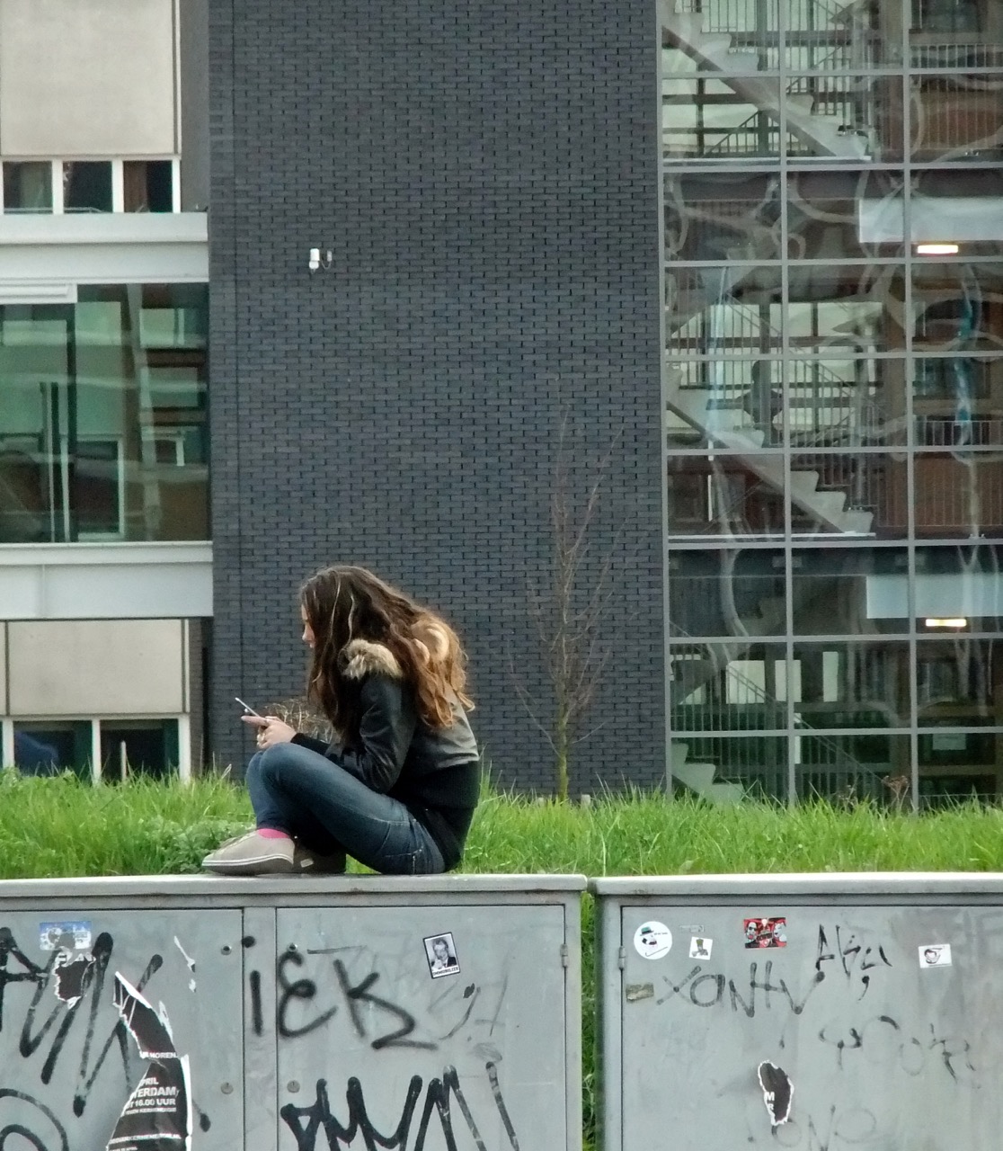 Spent the first part of the day on a plane then ambling through the German/Dutch hinterland on suburban trains: the second part of it at the Networked Learning conference in Maastricht, and part of the evening in the building in which the treaty of European Union was signed in 1992. Good photo opportunities today and I took three or four decent portraits of total strangers. This was the best: she looks pretty cool, I think.