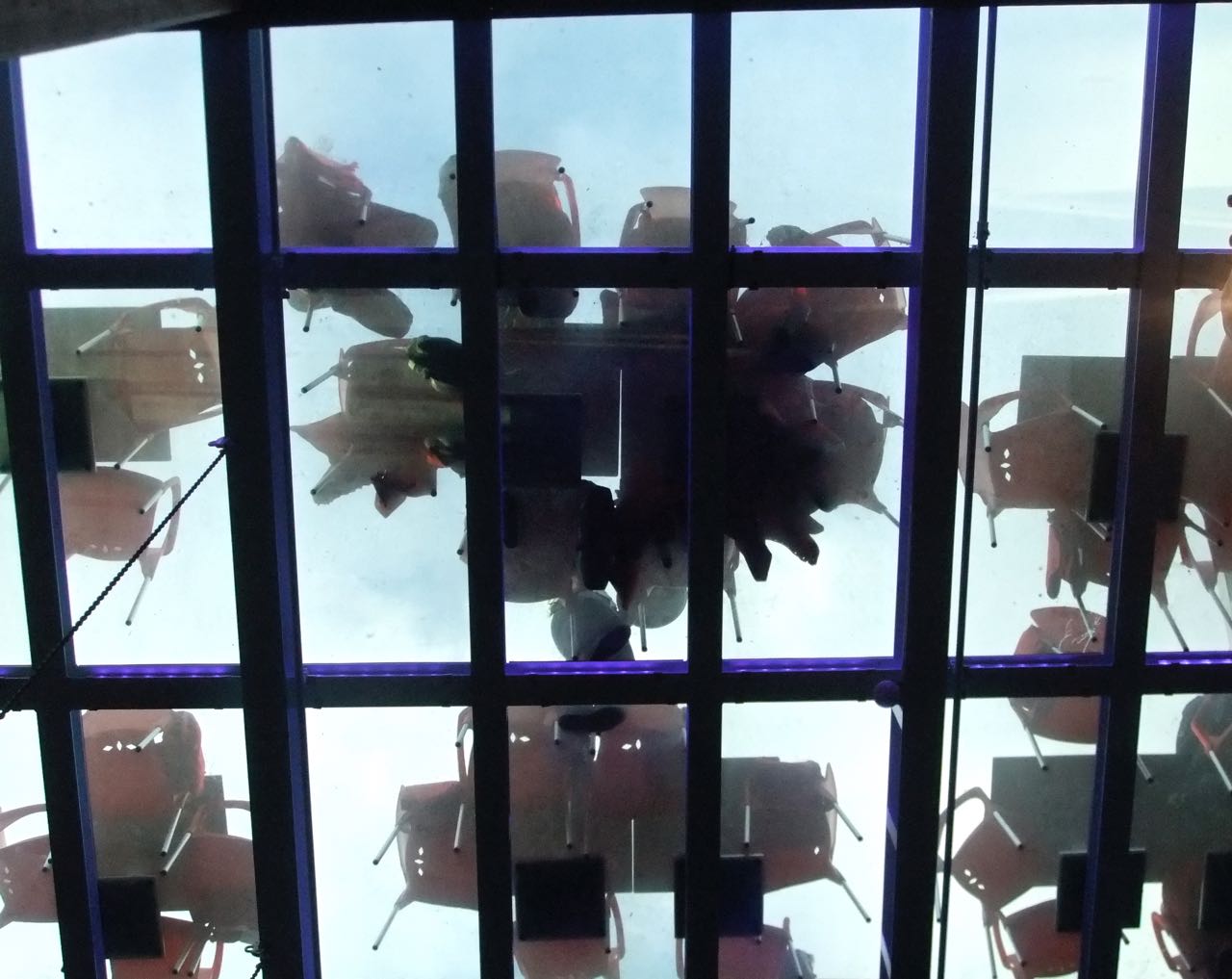 So here we are with the first of the backlog of pictures from Norway. On this first evening I took Clare and Joe up Mount Fløyen to see the classic view of Bergen: but this blog has already featured that so to avoid cliché and repetition here’s a strange view from a bar down by the waterside. The ‘roof garden’ is just a floor of transparent perspex or glass, three stories up. Would you sit up there? I think it would be a rather nauseating experience, to be honest.