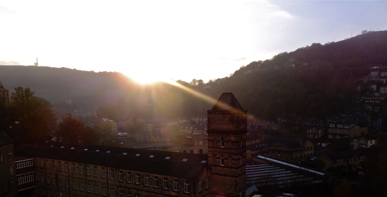 I suppose at one level this repeats the ‘fire’ theme which has characterised the other two photos of the weekend, but not in quite the same way. Here we are, the sun starts to set behind the valley walls at 3.40pm now: it is truly winter. Although by mid-December the sunset will have reached as far east as the mobile phone mast to the left.