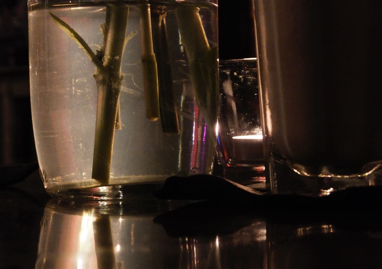 … well, for a couple of months anyway. We travelled down south together as the first stage in my journey to Australia: what with all the snow at the moment (of which I am bored taking photographs), giving myself a couple of days to get to the airport seemed the best move. This was taken on our table as we had our last drinks in the Pelirocco hotel, Brighton (you’ve seen it before): left-to-right; the bottom of a flower vase; the glass with tea-light candle in it; and my White Russian, yum yum.