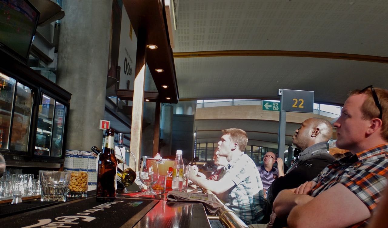 Gosh, here I am in an airport, that hasn’t happened much this year has it (sarcasm warning). Sat out a half-hour flight delay at Oslo airport (which doesn’t seem to be particularly near Oslo) by watching others watching Norway v Italy in the UEFA Under-21 championship: final score 1-1, if you’re interested. Slightly strange light on the guys in the middle but I like the shot anyway, it was taken very candidly and quickly so you never quite know how they’re going to turn out.