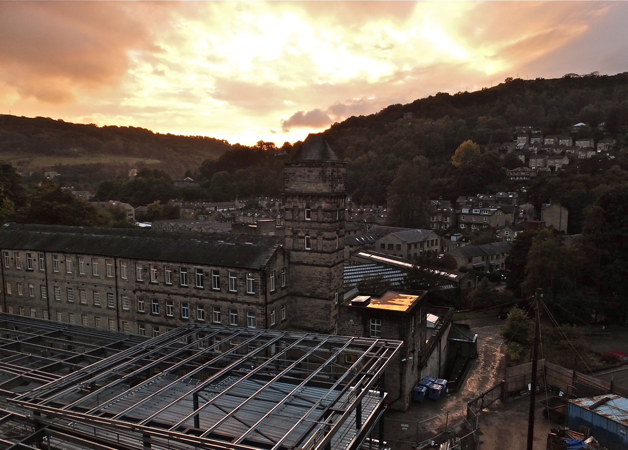 Among other things you get a good impression of the rising extension to the Nutclough Mill (see also here and here). Will it look OK when finished, or terrible? Well, doubtless you will find out, as will we.