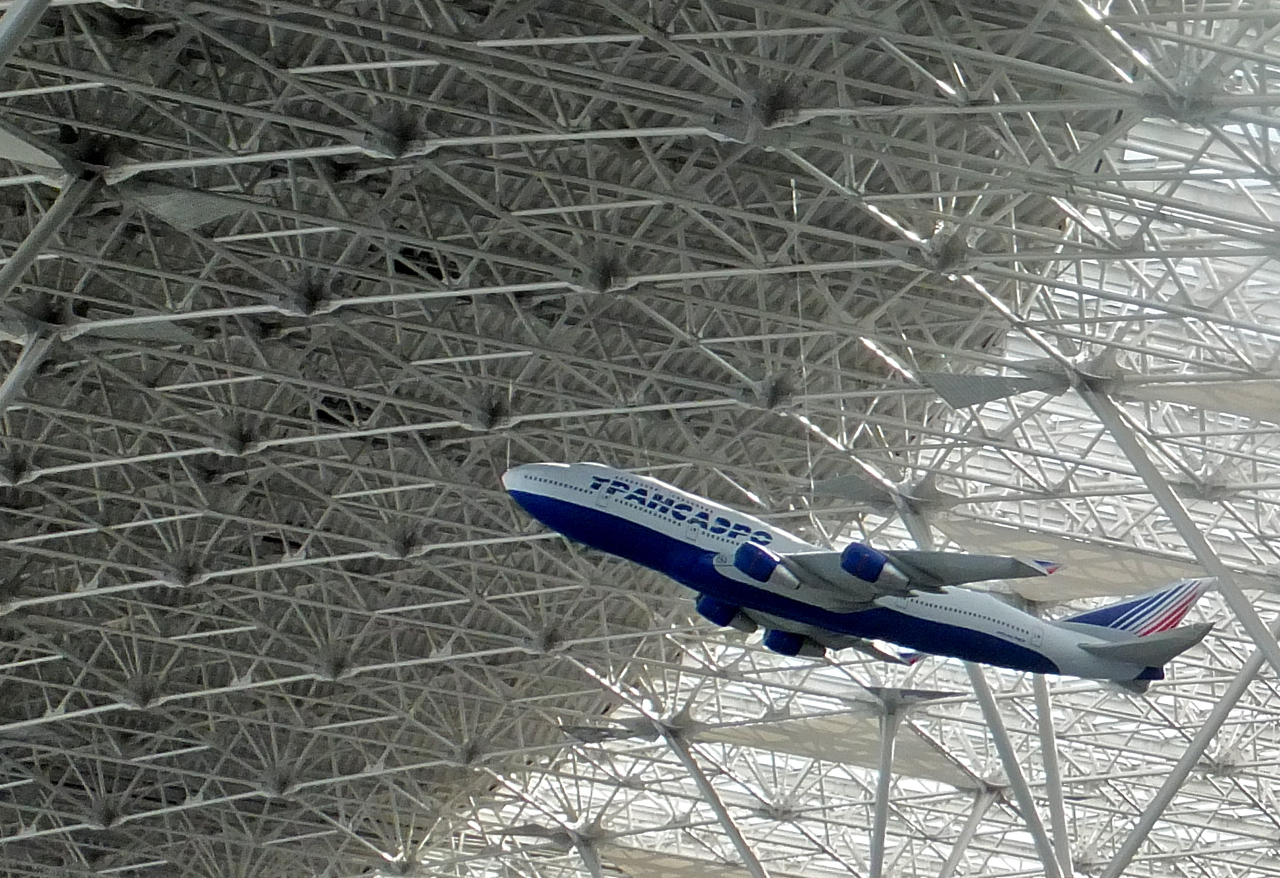 Well, the ceiling of the terminal building anyway. The plane’s a model, in case you were wondering. Back home after four enjoyable days in Russia.