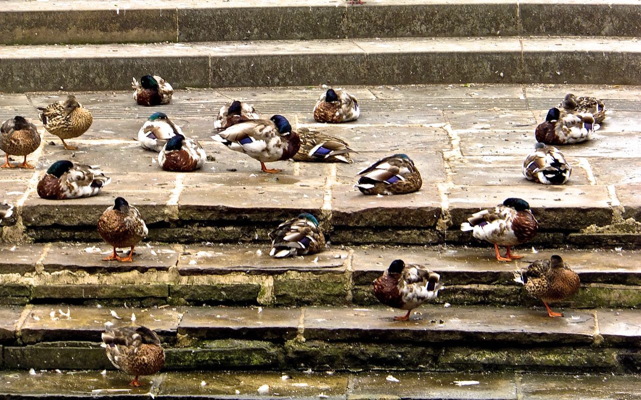 I make it there are 20 mallards in this picture, and unless I’m mistaken, every one of them is asleep. Proof of one thing anyway — ducks are sensible creatures, who keep leisurely working hours.