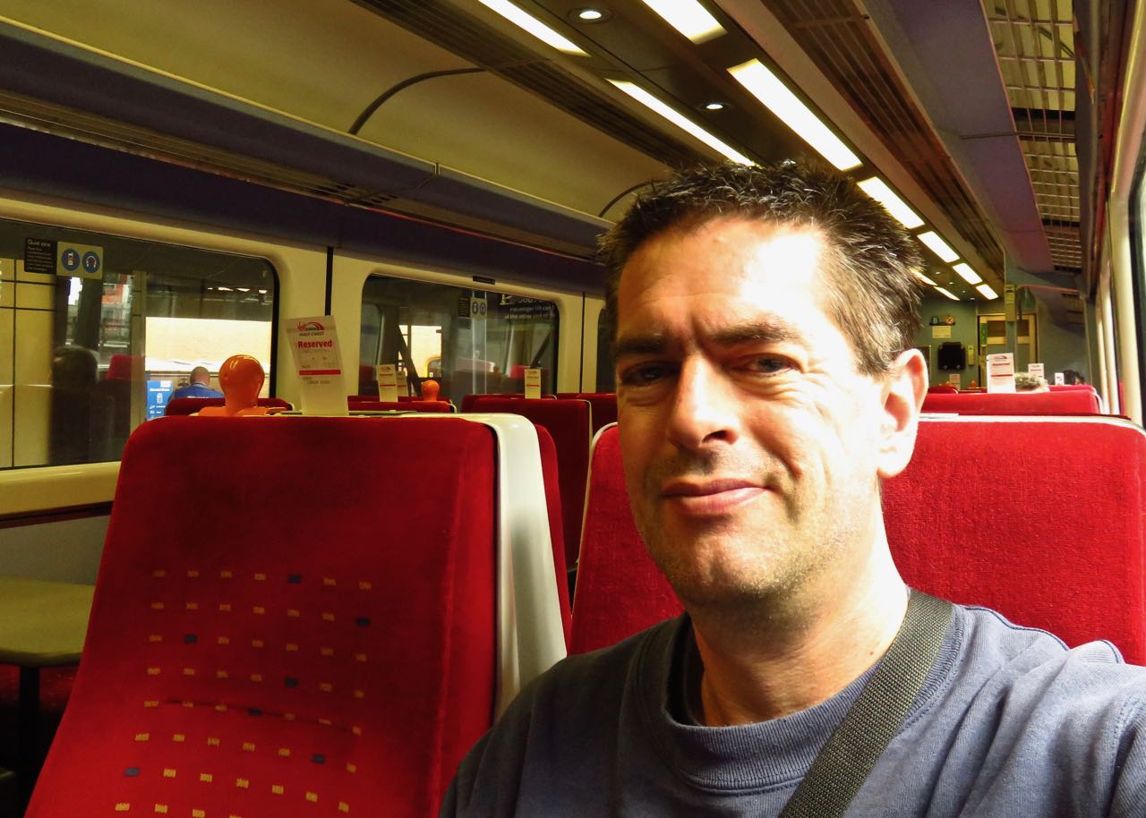 26th August is my birthday, so today marks the end of the fourth year of this blog. On the day I started it, 26th August 2011, I took a picture of me (and Clare) on a train going down to London, which though it wasn’t The Photo for that day, appears on the ‘About’ page. So you can have a look at it if you like and compare it with this one, taken, also, on a train going down to London. I think I’m weathering OK. I intend to keep the blog going indefinitely… even if its title is now well out of date.