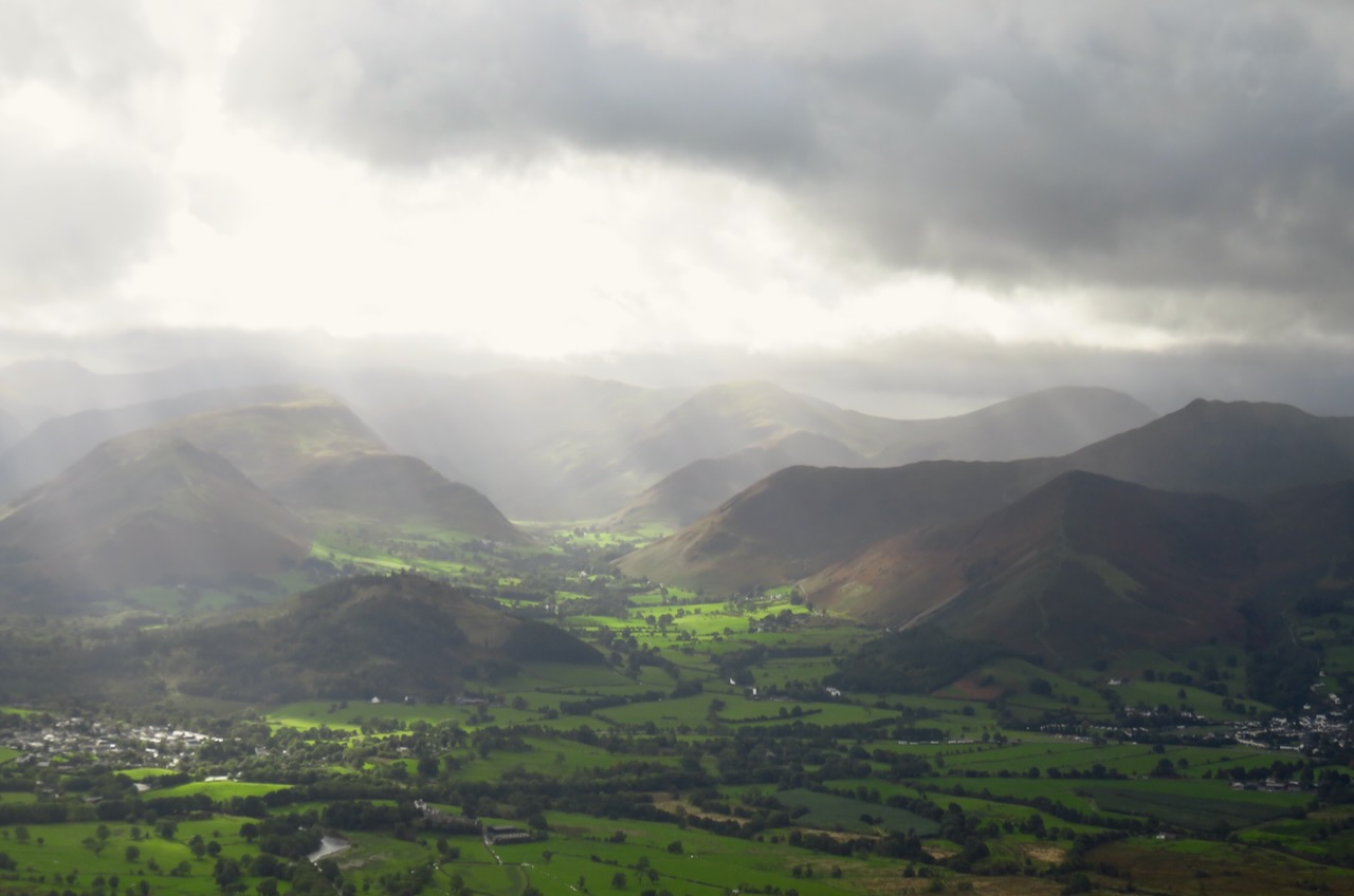 I accept I am lucky to have a job which allows me, some days anyway, to get paid for reading and thinking, and there’s no particular reason why I need to do those things in an office, or at home. Alfred Wainwright — a man who did know a thing or two about the Lake District — calls the view south from the Skiddaw range the best one there is, and I think there are more people who would agree with him than dispute this. Particularly today….