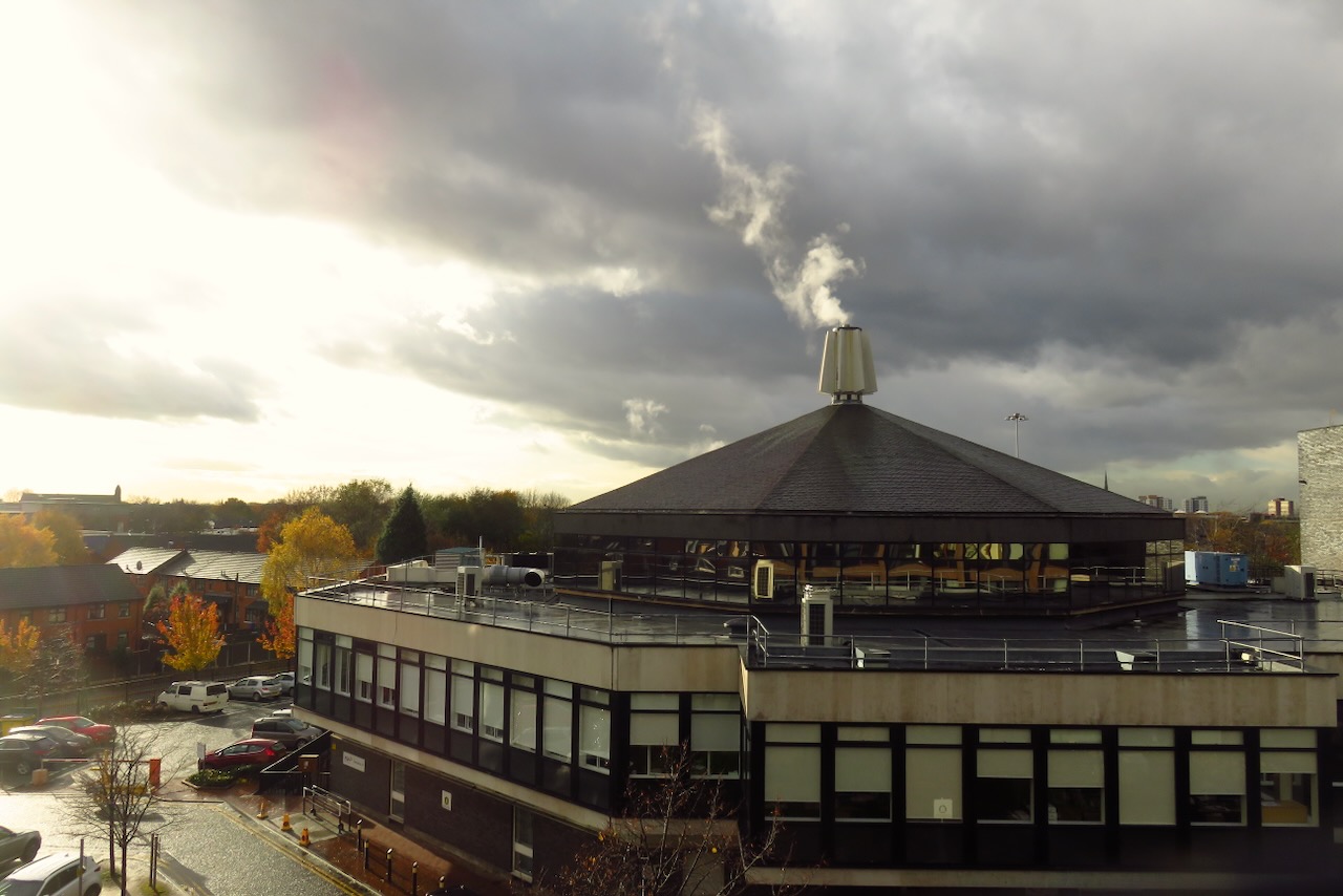 Back in the foul summer of 2012, 29th August to be precise, the blog featured a photo of this building (the headquarters of AQA, the examinations authority) with a heavy storm brewing behind it. At that time the office from which I took the picture was occupied by an admin colleague, while I was stuck in a cold and dim room on the north side of the building, without a view, that I never liked and never felt at home in, which is why it never featured on the blog (I think only two pictures were ever taken in there). Happy to say that this summer I moved, and my view is now much better — although the weather looks much the same on this shot (but it’s November, rather than August, so we’ll let it off somewhat).