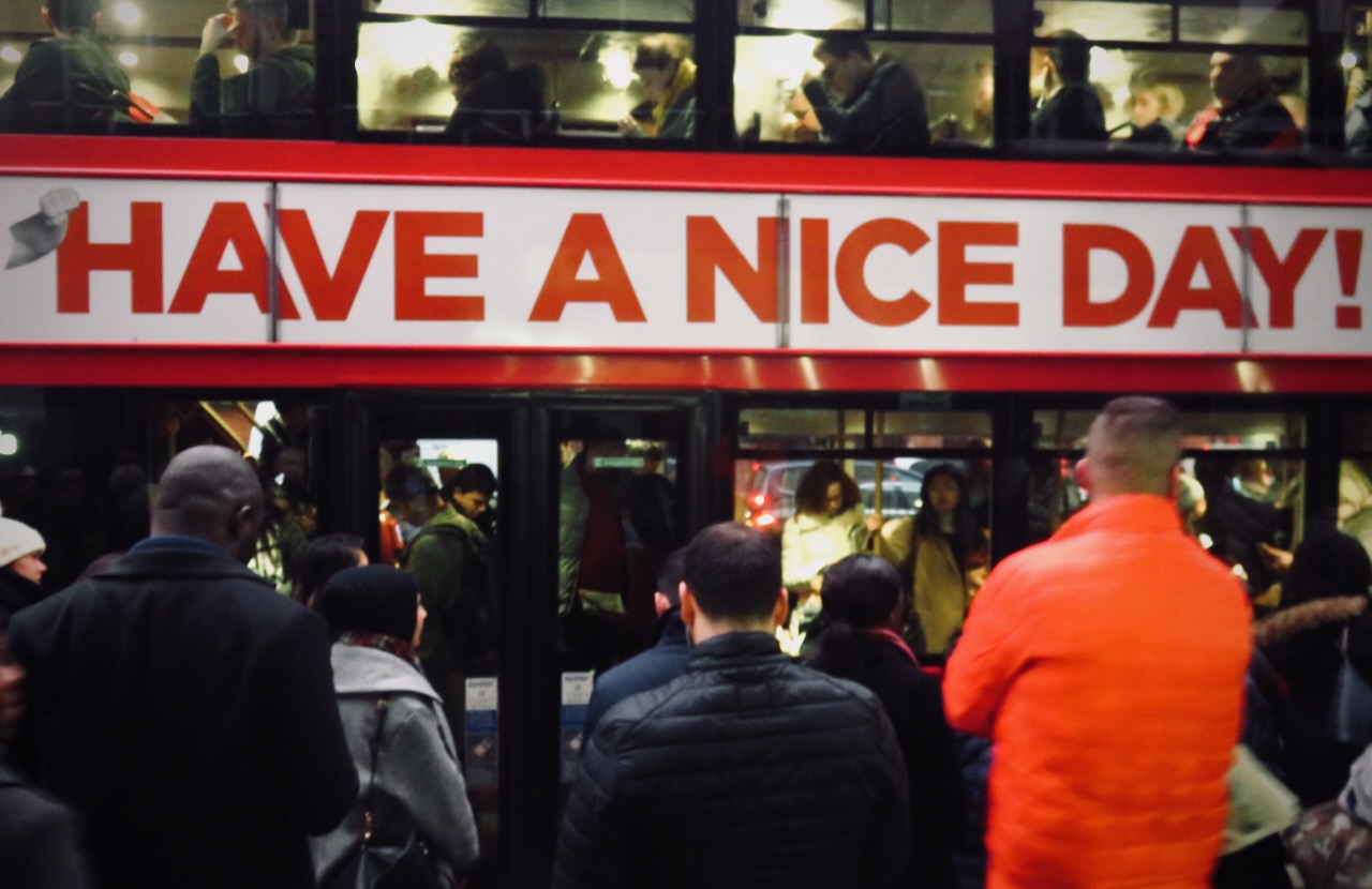 Due to the 24-hour industrial action on the Tube, the bus stops on Euston Road this morning were like scenes from Dante’s Inferno. The bus advert just adds tragicomedy.