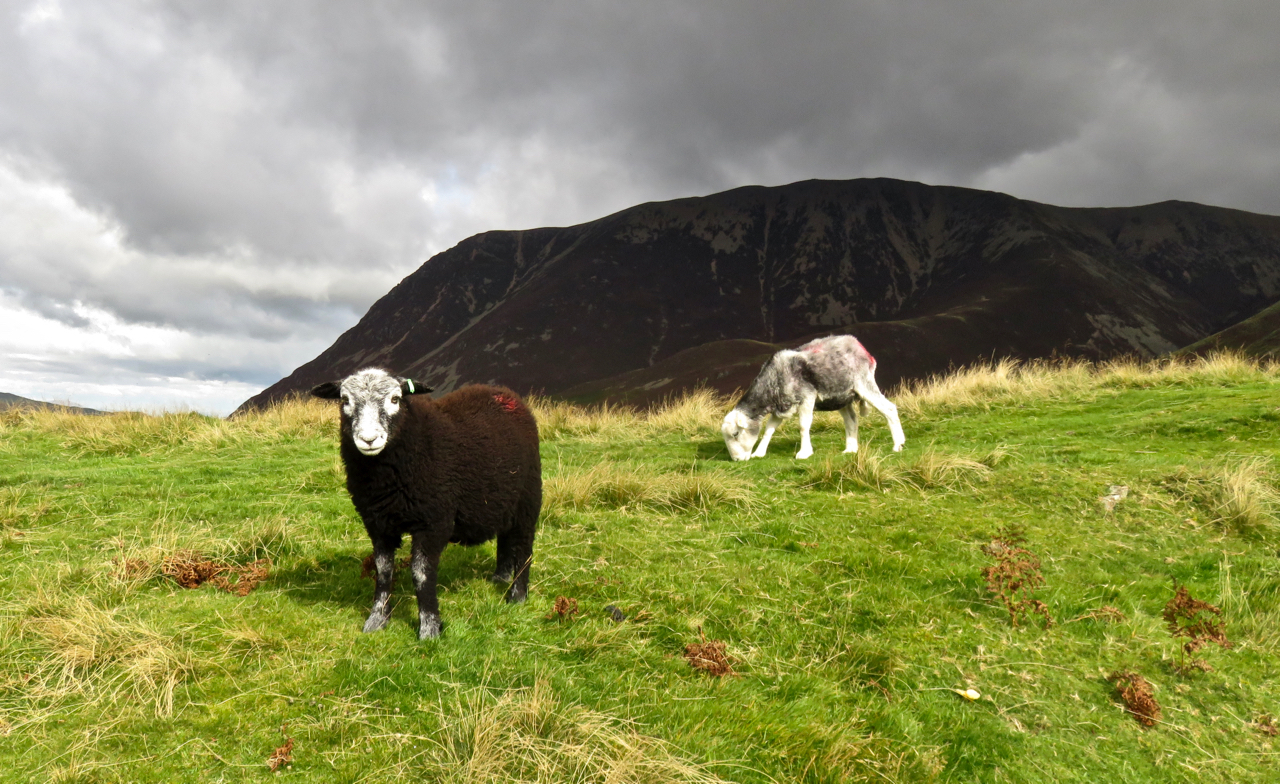 The six years I’ve been doing this blog have overlapped with the eight years I’ve been regularly going to the Lake District to get my walking fix. It’s been long enough for locations to recur, as I intend to cover the whole place twice. Back in October 2011, quite early on in this blog (day 64), the cover star was a sheep on the summit of Rannerdale Knotts, a small but perfectly-formed peak near Buttermere. I returned there today, and the local sheep-life continued to seem rather chilled out and happy with their lot in life. So let’s picture them again. (Rannerdale Knotts is the green stuff we’re all standing on at this point — the dark mass in the background is Grasmoor.)