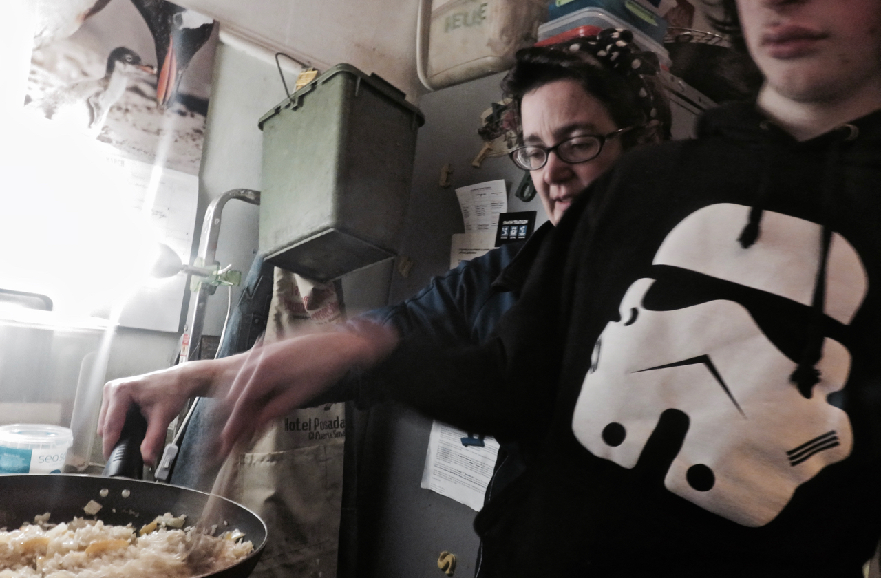 Off school thanks to the continuing dreadful weather, Joe recreates his cancelled Food Tech class for our dinner tonight. Clare helps by holding the pan but otherwise the meal was his.