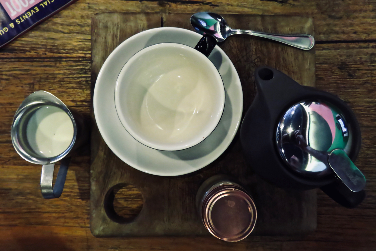 One of the things to admire about Australia is that it leads the world when it comes to the preparation and serving of a proper cup of tea. Always loose-leaf, always in a pot and thus with full ceremony: here, in ACMI (the Australian Centre for the Moving Image). I like the various circles on this shot. It’s also, technically, a self-portrait.