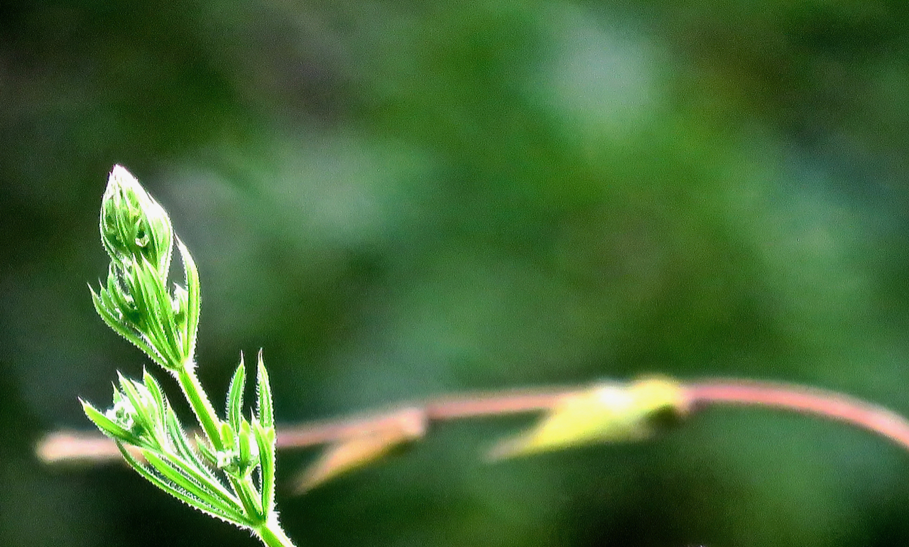 Very little happened today — nor will happen for the next couple of days, so let’s see what can be done with the creative juices. This shot comes from my playing with the zoom lens in the garden. Would it be better without the second plant in the background? I like the juxtaposition of the two.