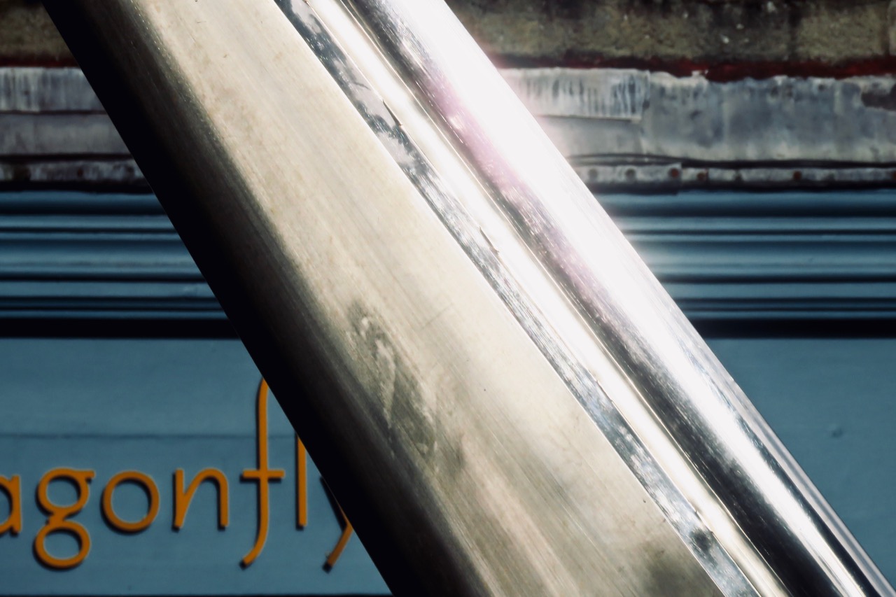 Gnomon is one of those wonderful strange words use to name mundane things. In this case, the bit of a sundial that casts the shadow. This particular gnomon sits in the middle of St. George’s Square in Hebden Bridge, and was putting in a brief stint of duty as I took this shot — although this was about the only moment of sunshine in the afternoon. The shop behind — the full name of which you can probably work out — will be either a boutique or a café, as those are the only shops the town really has, these days.