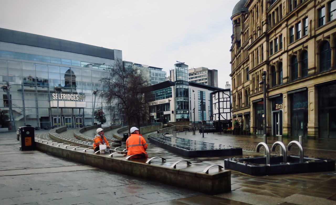 A year has passed since there was a shot taken outside the UK (it was in Bucharest on 2/2/20) and in that time only two of them have been taken outside England. Without going through the stats in detail, it’s probably twenty years since I last spend this amount of uninterrupted time on this island. Am I bothered about this? Not for myself, I’ve decided, but I am when I think about what this change represents. Even going into Manchester seems to risk being subversive these days. These two guys were a welcome flash of hi-vis humanity this morning.