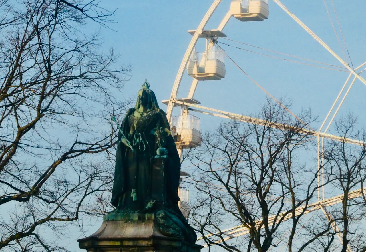 I believe that the person who is the subject of the most statues in the world is Buddha, but I would be fairly sure that Queen Victoria is the most-depicted woman. She never seems to look particularly happy, though: whether she really said ‘We are not amused’ or not. That most public statues have invariably become covered in guano (that’s birdshit, of course) doesn’t help either. This one stands in Dalton Square, Lancaster: another stage in a slow journey north, for Christmas.