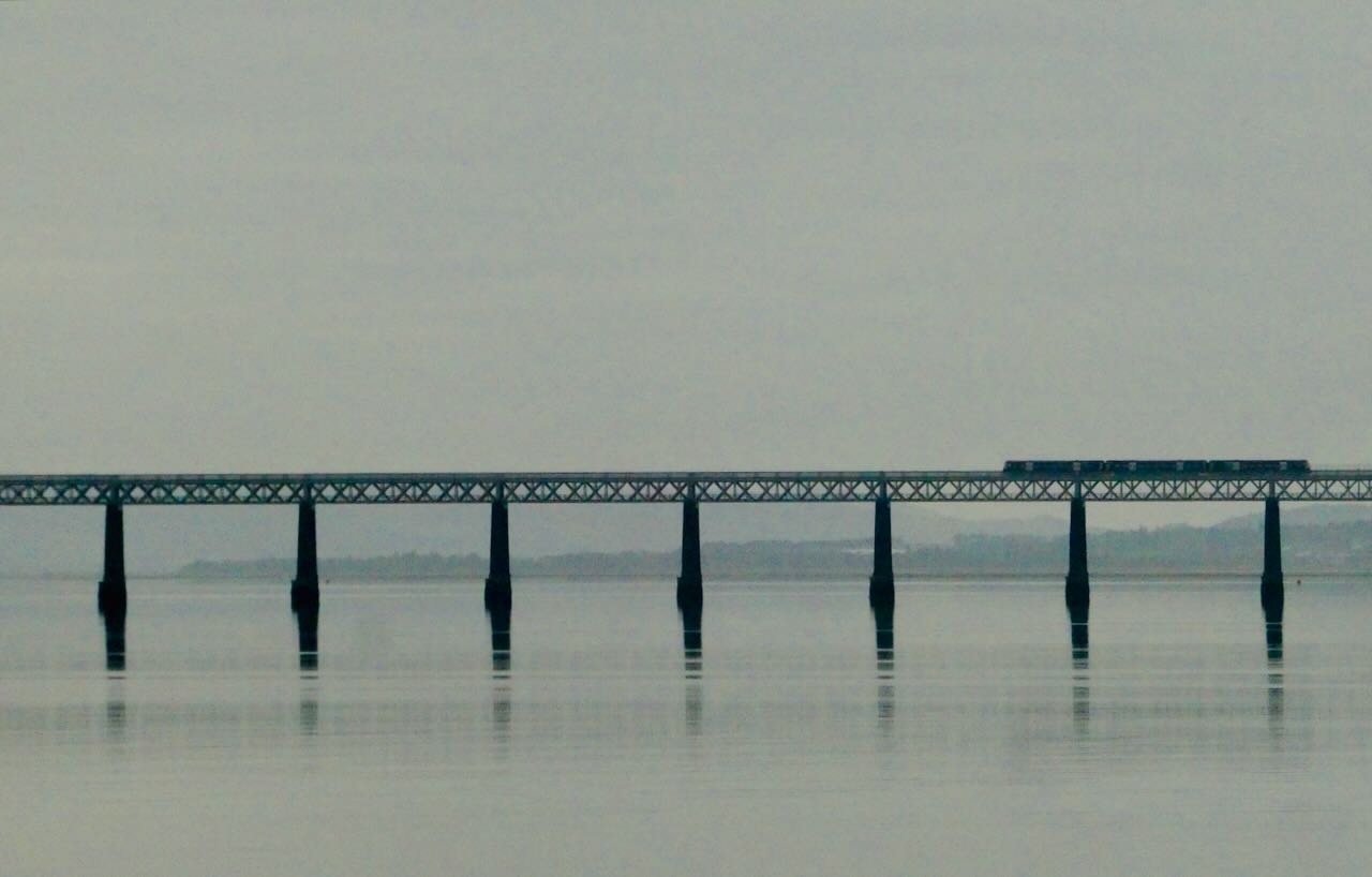 As seen crossing the Tay rail bridge, more-or-less on schedule. The shot is taken from Newport-on-Tay, on the opposite side of the firth from Dundee. I am feeling minimalist this Christmas Eve, it seems.