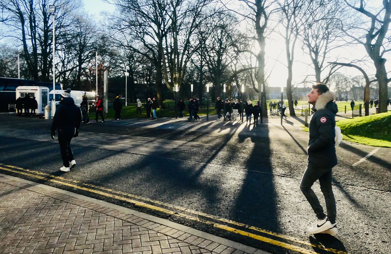 Hull City fans approach their club’s ground for this afternoon’s quite important match against Watford. Both teams are in the play-off zone in the Championship. But what they don’t know yet (and nor, then, did I as I took the picture) that all this anticipation is to be made pointless in about twenty-five minutes’ time. At that point, fifteen minutes before kick-off, the game was postponed, because though the pitch was in great condition, ground staff hadn’t bothered to de-ice the touchlines or the technical areas so the managers and linesmen said, er, hang on — we can’t do our work on an ice rink. I took pictures of that too, and looking at them, they’re probably justified. But all it would have taken was some salt applied at about 1.30. Instead, all these people just had to turn around and go home, including all the poor buggers who had trekked up from Watford on a Sunday and spent god knows how much to do so (and I’m down £35 on the train fare).