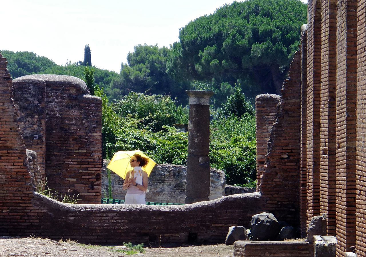 Ostia was the port city of Ancient Rome and there remain substantial ruins there. It was a hot, sunny day when we visited and I loved the way the light caught this woman’s parasol. But in the end I used the shot of the Tiber at night on this day, thus depriving Ostia of the chance to be another location for the blog.