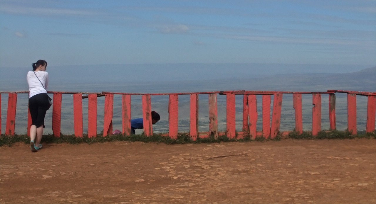 There was always going to be at least one more photo from this spectacular day in Kenya that made the blog. I haven’t even included the ones of the wildlife (giraffes, zebras etc). But I do like this shot, of my colleague Mirka, and Moeni, daughter of my student (and our guide/hostess) Alessandra, looking out over the Rift Valley from the lookout at 8,000 feet above sea level (2,660 metres). Not pictured: very persistent sellers of souvenirs.