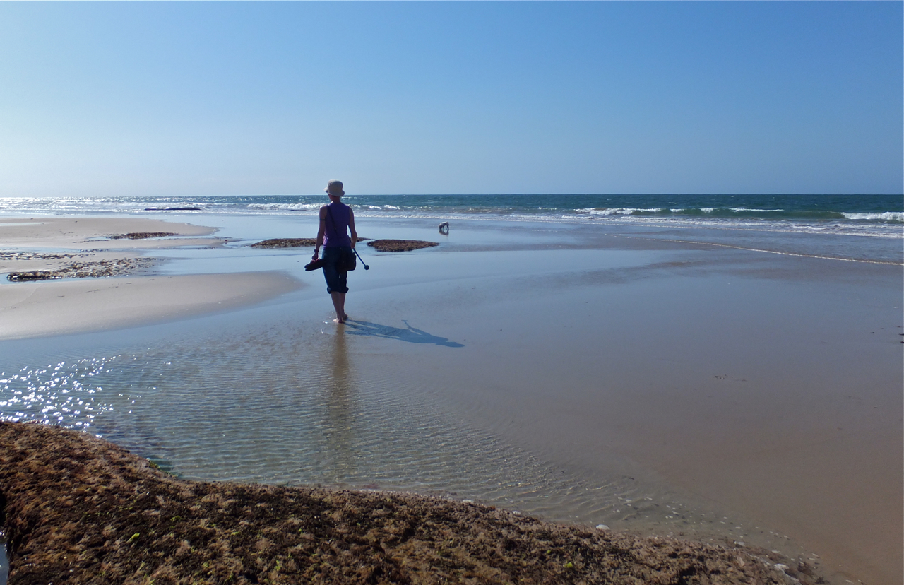 Visited this beach two days in a row, in fact; but this shot, from the first day, was then usurped by the picture of the heron in Geelong. This is my friend Sharon and, in the distance, dog Lily, enjoying just one of the thousands of largely unoccupied and spectacular beaches of her adopted home country, Australia.