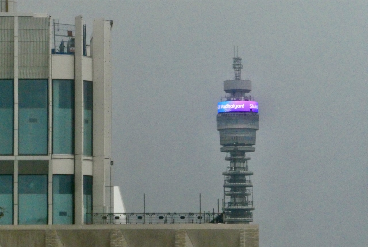 The Post Office Tower, as seen from room 337 of the Farringdon Travelodge — this morning, but also the last three mornings. It definitely looks like a spark plug, though — or possibly, some bizarre toy (let’s not go there, though).