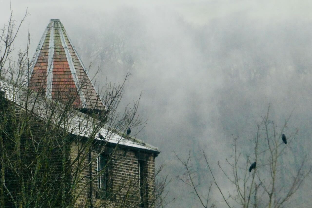 2025 is ending with a very Hebden-bound period of time, but I can’t say I mind. The weather is not conducive to any walking plans (then again, in December it rarely is) and I’m just getting on with the reading. Our ‘Eiffel Tower’ is called thus because it marks the end of the row of houses known as Eiffel Buildings; it might not be as imposing as the one in Paris but it’s still a cute building. The birds and mist add the necessary atmospherics.