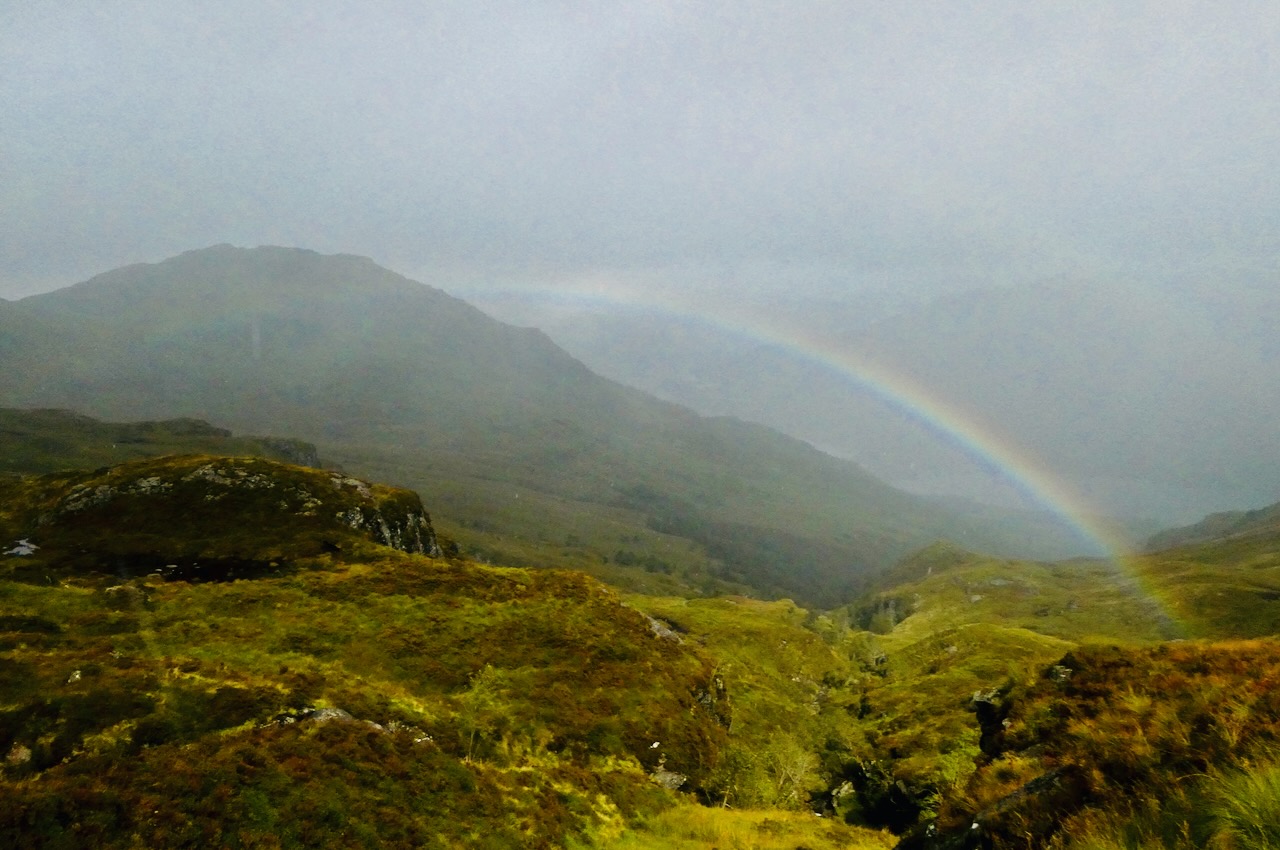 I would have preferred more of the sunshine and less of the showers, but at least this is a combination known to produce some pleasing atmospheric effects. The mountain behind is called Stob nan Coinnich Bhacain — please don’t ask me to pronounce that — but my destination for the day was Ben Vorlich, County Top number 107. More photos are therefore on the other blog.