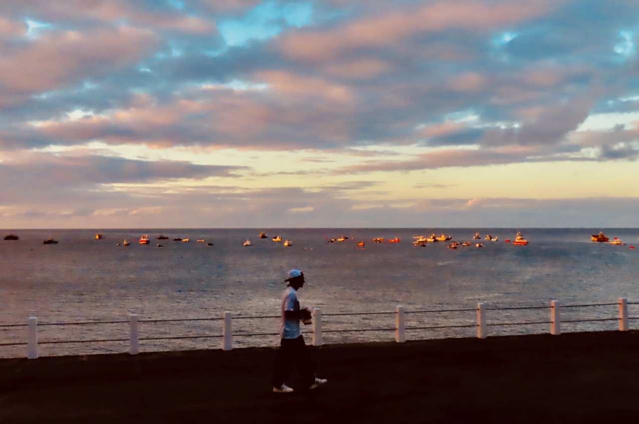 Jamestown is one of the very few places in St Helena where you can actually get down to sea level, and that, plus its place on the leeward side of what can be a rather windy island, is why the town is there. There’s no actual harbour, though. The boats and yachts congregate out to sea, and this evening, caught a few rays.