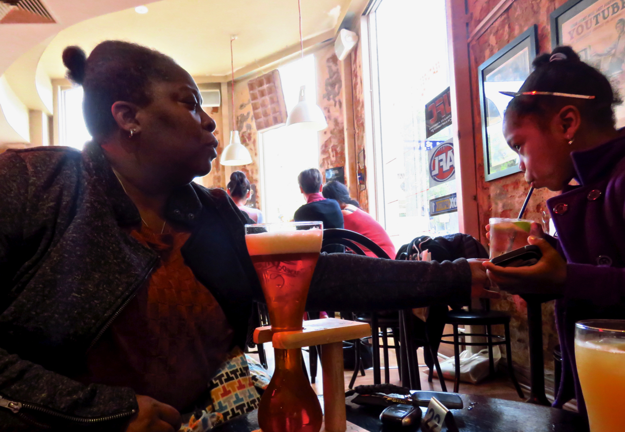 I wanted this week to get at least one of our Melburnian colleagues onto the blog and seeing as Linda has already made it — albeit a few months ago, in Manchester — here is Camille. But it would have been wrong, today at least, to depict her without daughter Gabby, who as she is on her Easter break from school, was obliged to join us today: but very welcome she was, including to the post-work drink at the Charles Hotel.