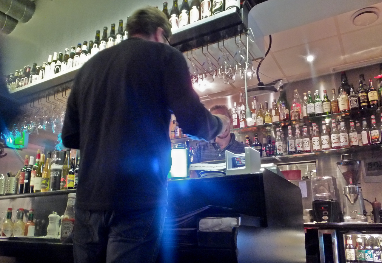 Nearly three years ago now, back towards the start of this blog, in November 2011, I posted a photo of the early stages in the development of the new campus for Høgskolen i Bergen (Bergen University College). I said back then that I was indirectly working on the project of helping the staff prepare for their move into the new campus, and three years later, that’s still what I’m doing. But we’re nearly finished with our side of it — and the new campus is now a reality. Today was my first visit there: it was great to finally see it as a space-in-use. This shot is just of some new offices in the building, but I’ve been getting more abstractly creative (or creatively abstract) lately. The circles are etched into the glass, either just for effect or to stop people randomly stepping through the windows. I like the way they obscure and then reveal the mundane personal effects behind them.