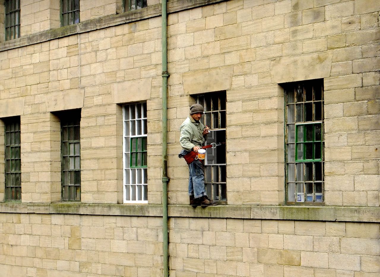 There was certainly a decent amount of smoke coming out of one of these stacks; but it seems he was satisfied that nothing was particularly amiss. I pray that I never have to get up on our roof, or the roof of any of these overdwellings, for any reason, professional or otherwise. It’s a long way down from five stories up.