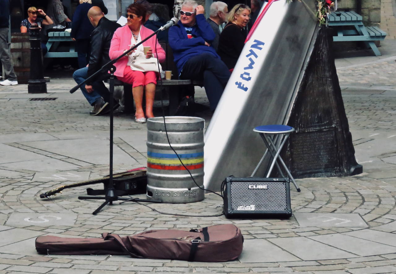 Some parts of the old Berlin Wall remain in the city. Probably they could have been demolished back in 1990 but the authorities realised — correctly — that they were valuable as memorials and/or tourist attractions. Or, as in the case of the East Side Gallery, which runs beside the Spree for about a kilometer near the Ostbahnhof, an art installation; this long line of concrete has been decorated by a range of murals, including this one of Soviet dissident Andrei Sakharov, who seems to disdain the busker beside him, playing as he is on a load of old water pipes, or something.
