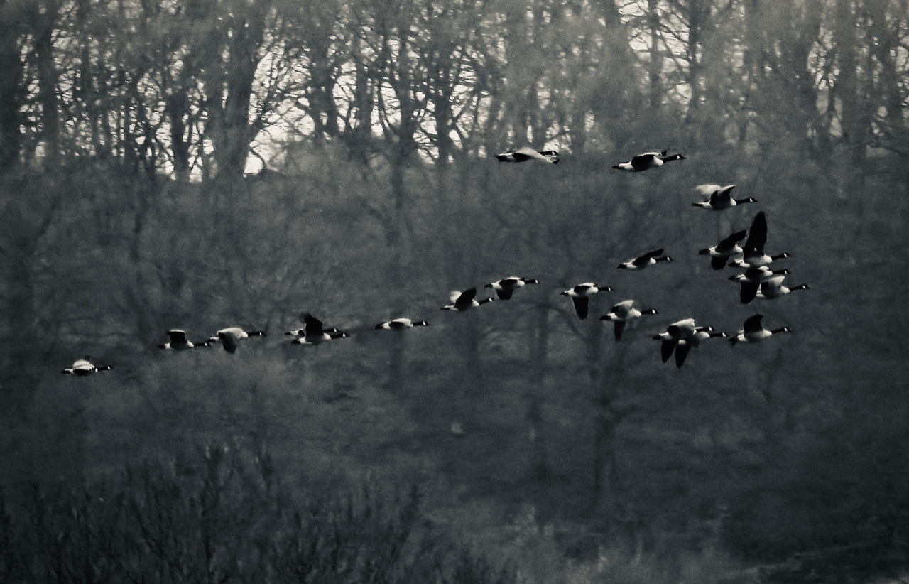 Why head west? Why not south? Well, the valley runs east-west here so I guess they were trying to work out the best route. Anyway I think Canada geese (which these are — Branta canadensis) live in the UK year-round these days, so maybe they were just commuting up-valley to Todmorden.