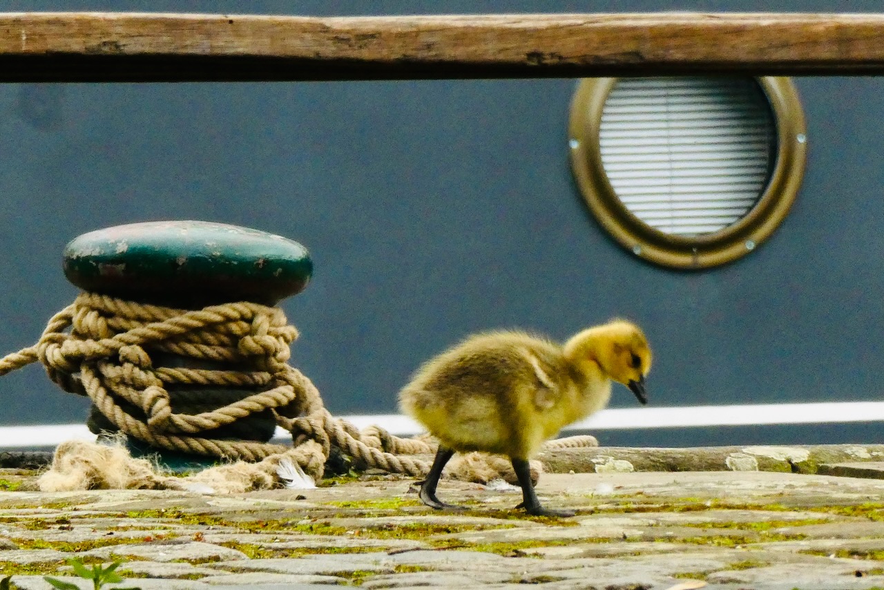 Only a few weeks back the gawky thing with over-size feet would have been an adorable little ball of golden fluff. We all go through an awkward phase at adolescence though, don’t we. The pigeon, meanwhile, is attempting to recruit this new arrival in the war against the ducks, but soon, the goose will realise it is above all that rubbish.