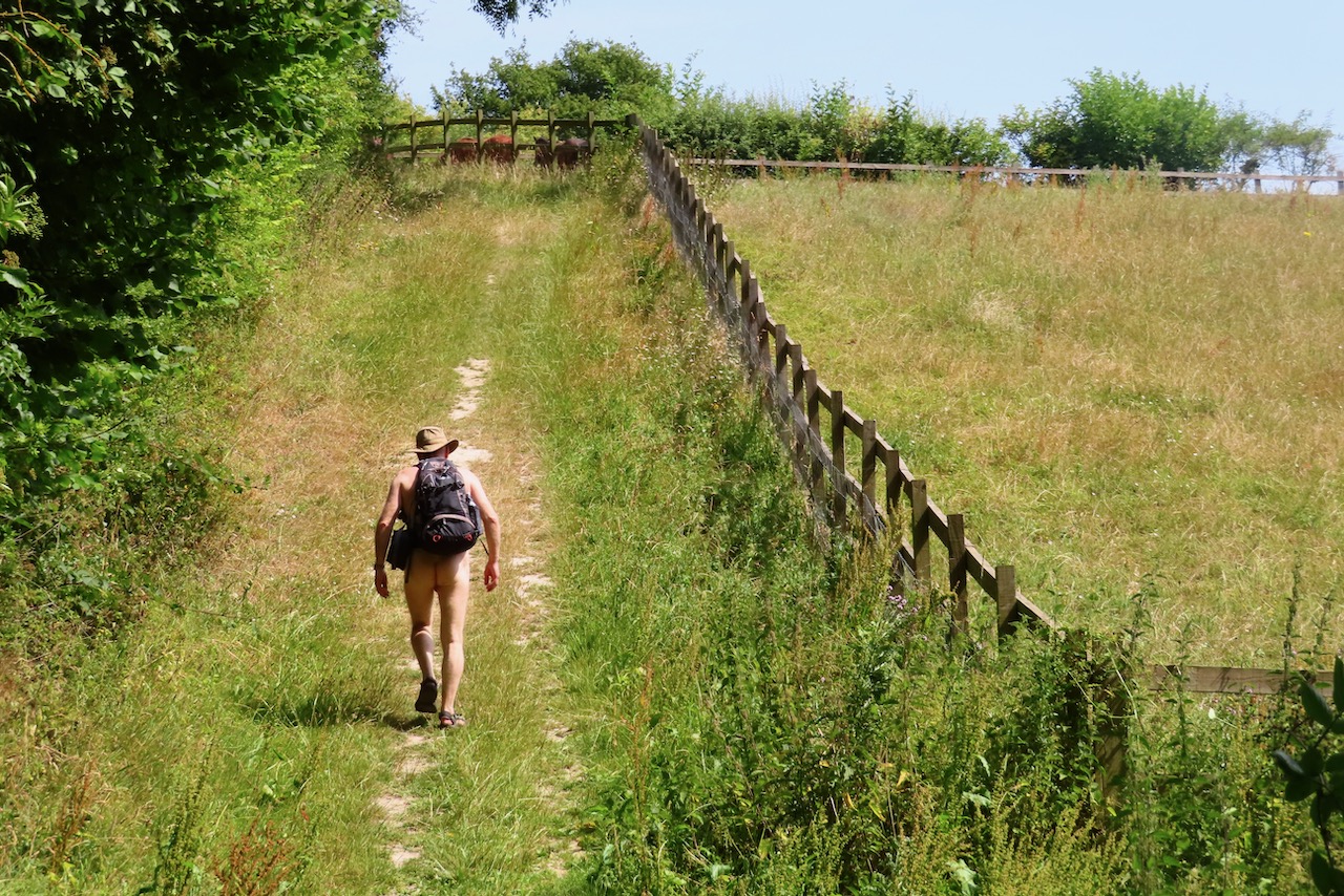 Like this gentleman, I felt that a ramble in the Chiltern hills was a fine way of spending a warm, sunny Sunday morning (and I got another County Top out of my efforts, if you want to read more). Unlike this gentleman, however, I did it in clothing: this bloke really was stark bollock naked other thank his pack and shoes. This shot is a rear view only but I can assure you he was letting it all hang out. I hope he had sunscreen. He looked rather grumpy about it, all things considered.