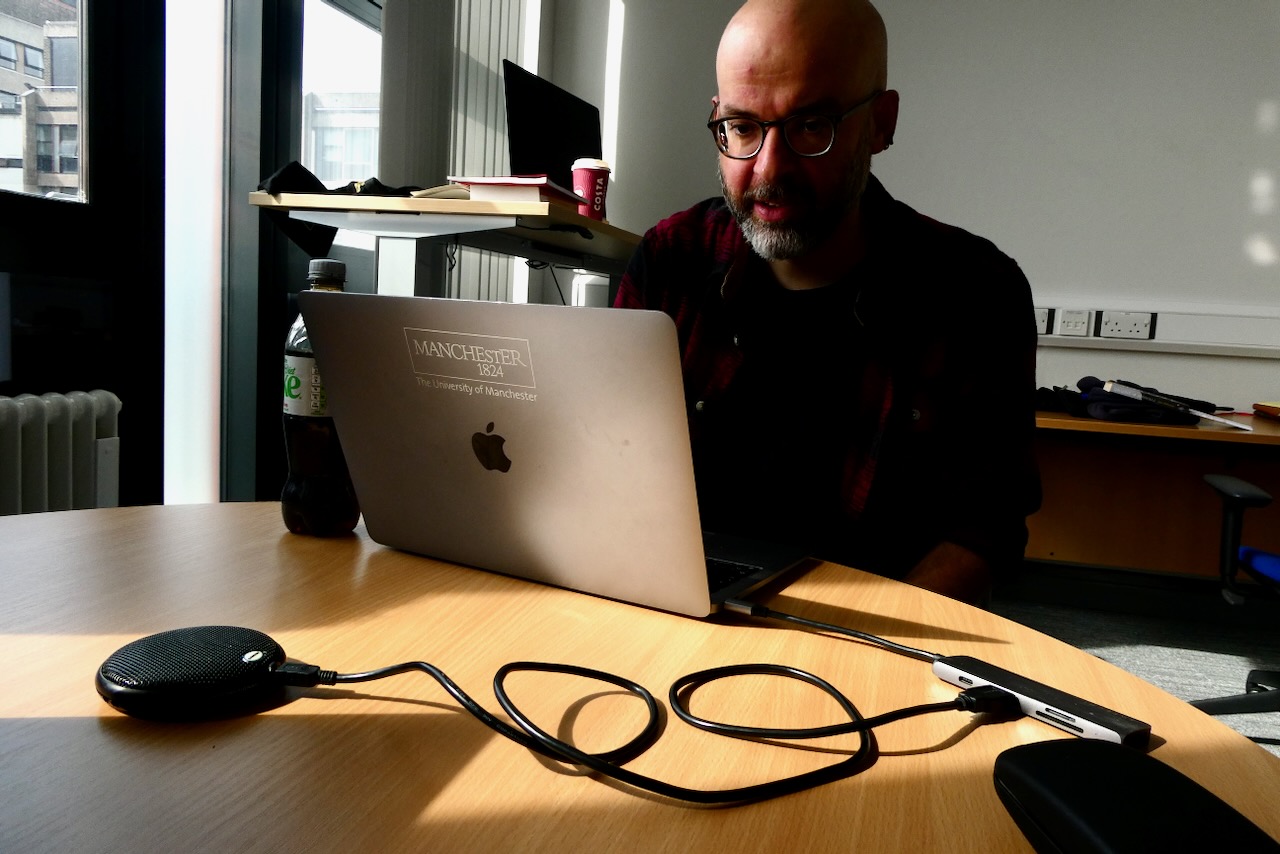 And most of us were listening to it — honest. (To be fair to the guy on the left, he’s keeping an eye on the Zoom room.) Golly, three days in a row in Manchester: that’s an outbreak of keenness, particularly in a week when I didn’t have any lectures to deliver.