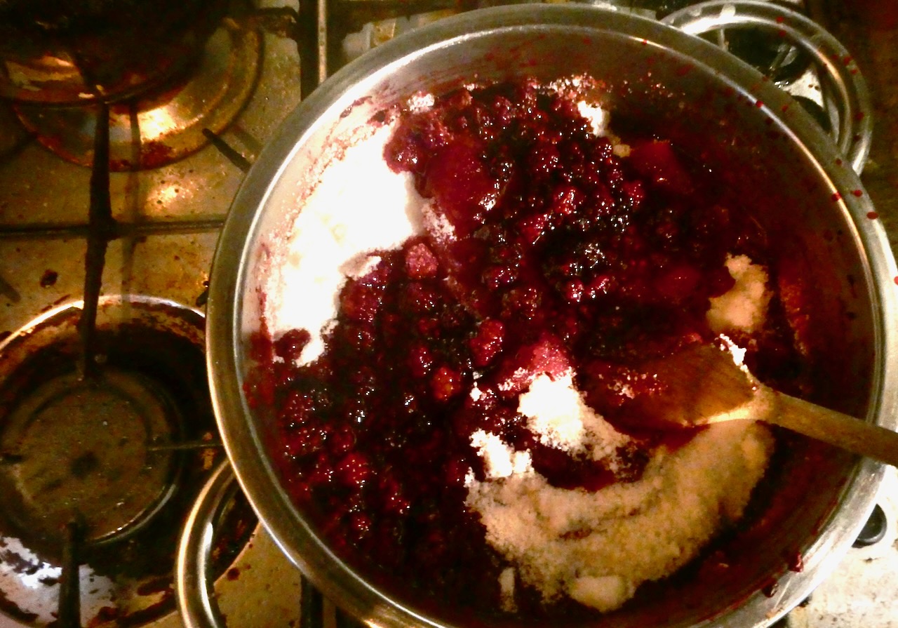 Four pounds of blackberries, all foraged from the roadsides within 200 yards of home, have just been combined with four pounds of sugar. Four pounds of sugar is a lot. But, an hour or so later, there were six jars of very nice jam ready to see us through the winter. Making jam may seem a terribly middle-class thing to do but it ain’t hard, y’know.