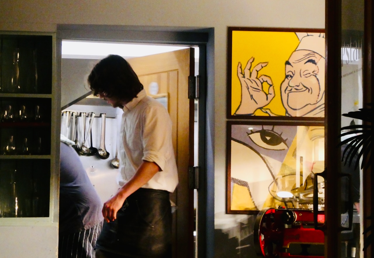 A tasty pasta dish, being prepared by the good chefs of the Eagle pub on Farringdon Road, London. She’s allowed one bit of pasta to escape, but I’ll let that pass.