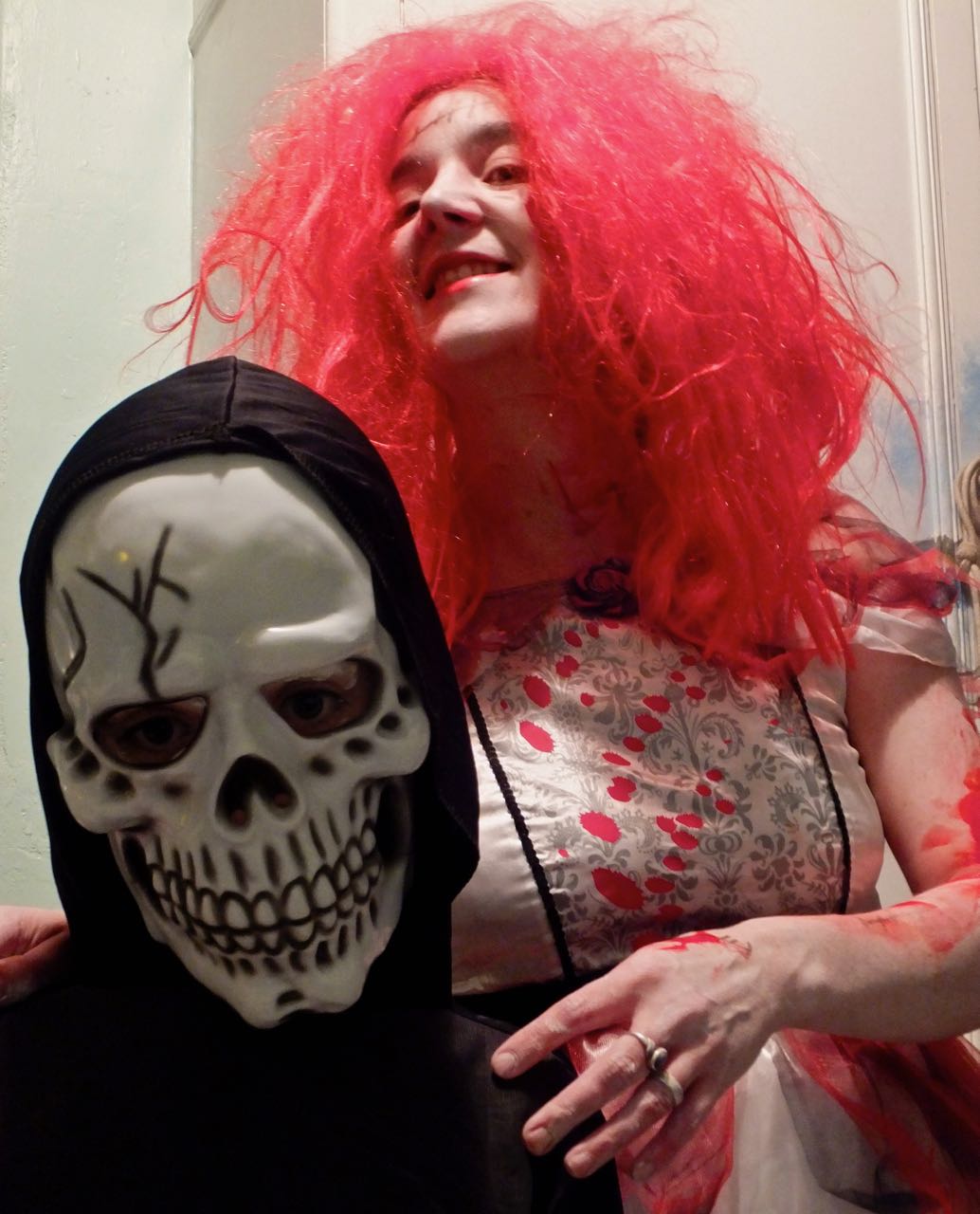 I don’t really do Hallowe’en myself, but others do, and it’s a good photo opportunity at least. Like, for this tender mother-and-son shot. Aren’t they cute.