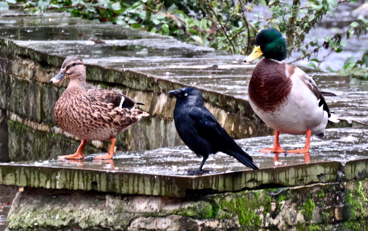 As predicted yesterday, the weather did change, into cold, damp greyeness. All very depressing, especially at the moment. It’d be nice to think this shop can open soon and restart its sale, but it ain’t gonna be next week or anything, is it. Meanwhile, the ducks get on with life and wonder what the jackdaw wants out of them: an alliance against the pigeons maybe?