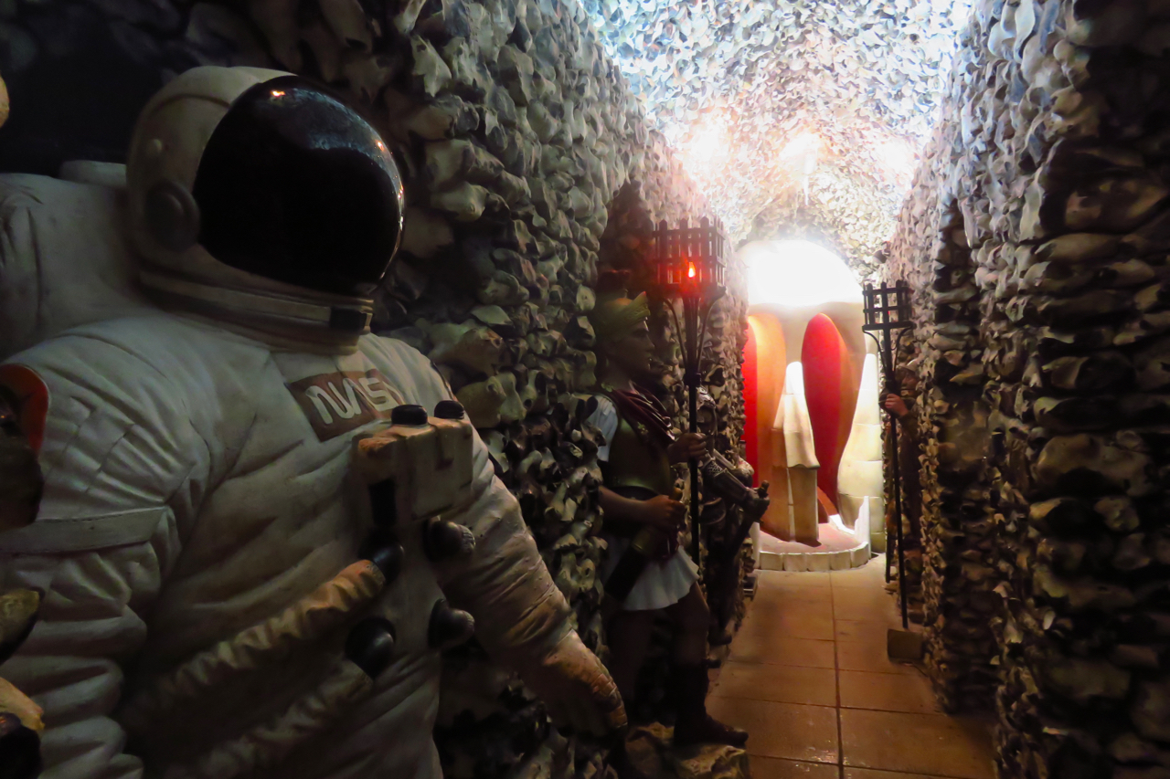 In the time I have been doing this blog, I have made two previous trips to this place, but it has not been documented here for some reason or another. Strange, actually, considering what The Forbidden Corner actually is, a gloriously imaginative folly, a labyrinth where (the first time I visited, at least) I had genuinely no idea what might be around the next corner (forbidden or not). The third trip today was made with my students from Manchester as I had decided that the FC would be a good place to start developing some team-building skills. Better than leaving them up on a moor somewhere, particularly on a rather dull and rainy day like today. Better than being stuck in an office on a Friday, too.