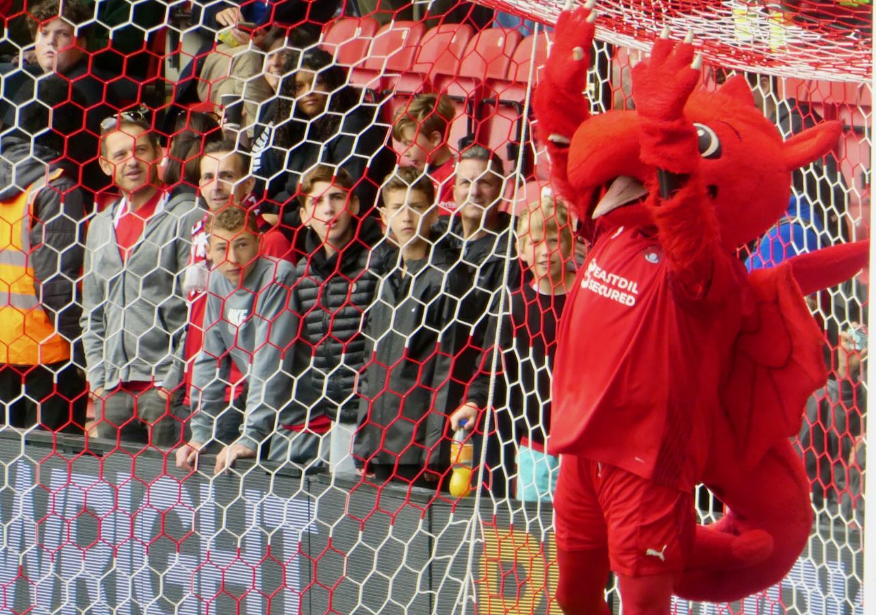 Went to Leyton Orient FC, of League One, today simply because I had never been there — it’s another one of those list-making things — a lunchtime kick-off making it straightforward at both ends of the day. Their two dragon mascots were quite endearing and going on the faces of the crowd behind, at least a couple of whom are clearly old enough to make their own judgments here, the locals think so too. They lost the game, though: 2-3 to Stevenage.