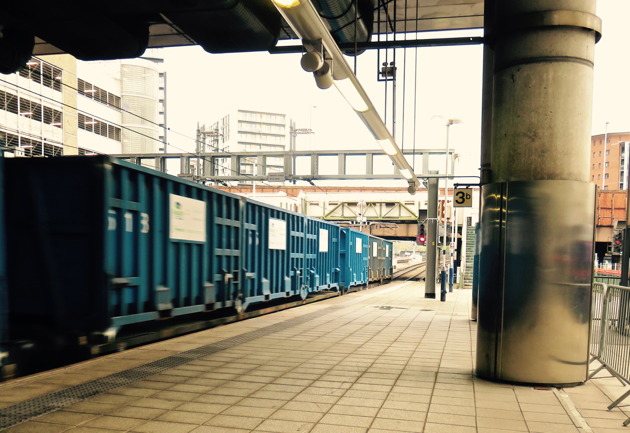 Freight does still make an occasional appearance on the line, usually long trains of wagons marked with ‘Drax’, meaning they are heading to or (in this case) from the power station. Not that you can tell any of this from this extended blur, but I challenge anyone to get a sharp picture of something moving at at least 30mph in the dark. Drax (it’s amazing what you can learn from Wikipedia pages on a Wednesday morning) burns wood imported from the US and Canada, which these trains then ship across the country from Liverpool, with Hebden en route — so we often see these, at all times of day and night.