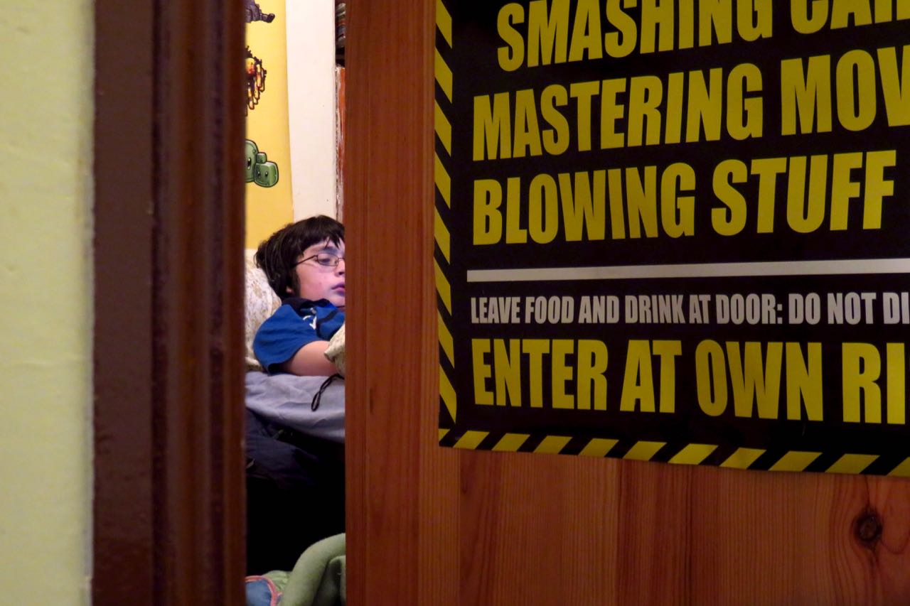 Joe has two weeks off school. I think it’s fair enough that he can spend the first weekday of this break lying around on his bed doing what it says on the door. One and a half more days of work for me and then I will gladly join in.