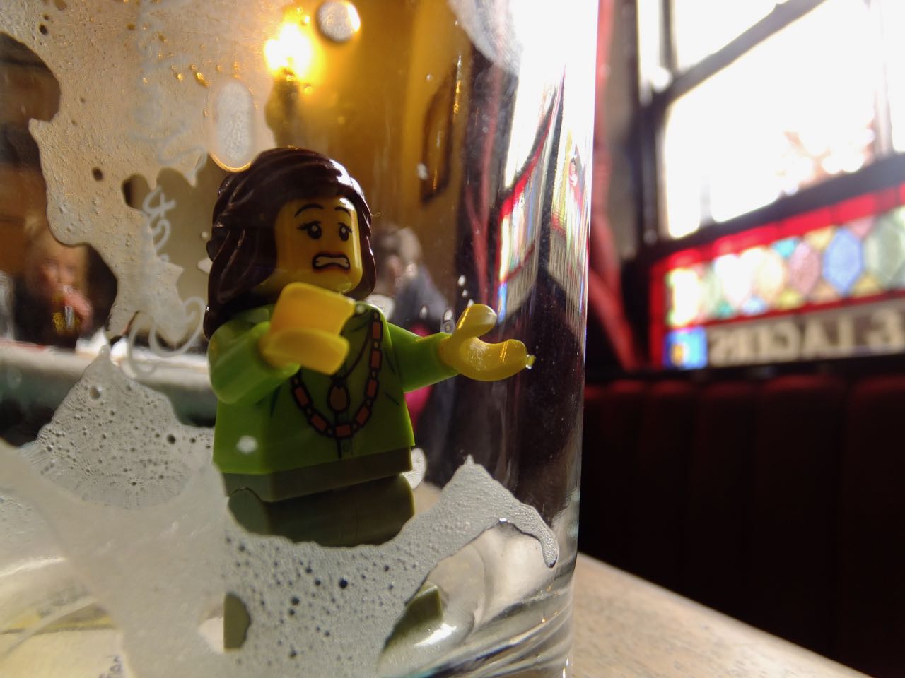 From Luddenden — setting for yesterday’s blue-sky picture — to London, which is rather bigger, but in which the weather continues to be very pleasant. The blues seen here come partly from the sky but also this glass, which was a vivid blue and caught the eye. Clare gets on, at least in part, for the second time in three days and soon will be surpassing Joe in terms of the number of blog appearances overall.