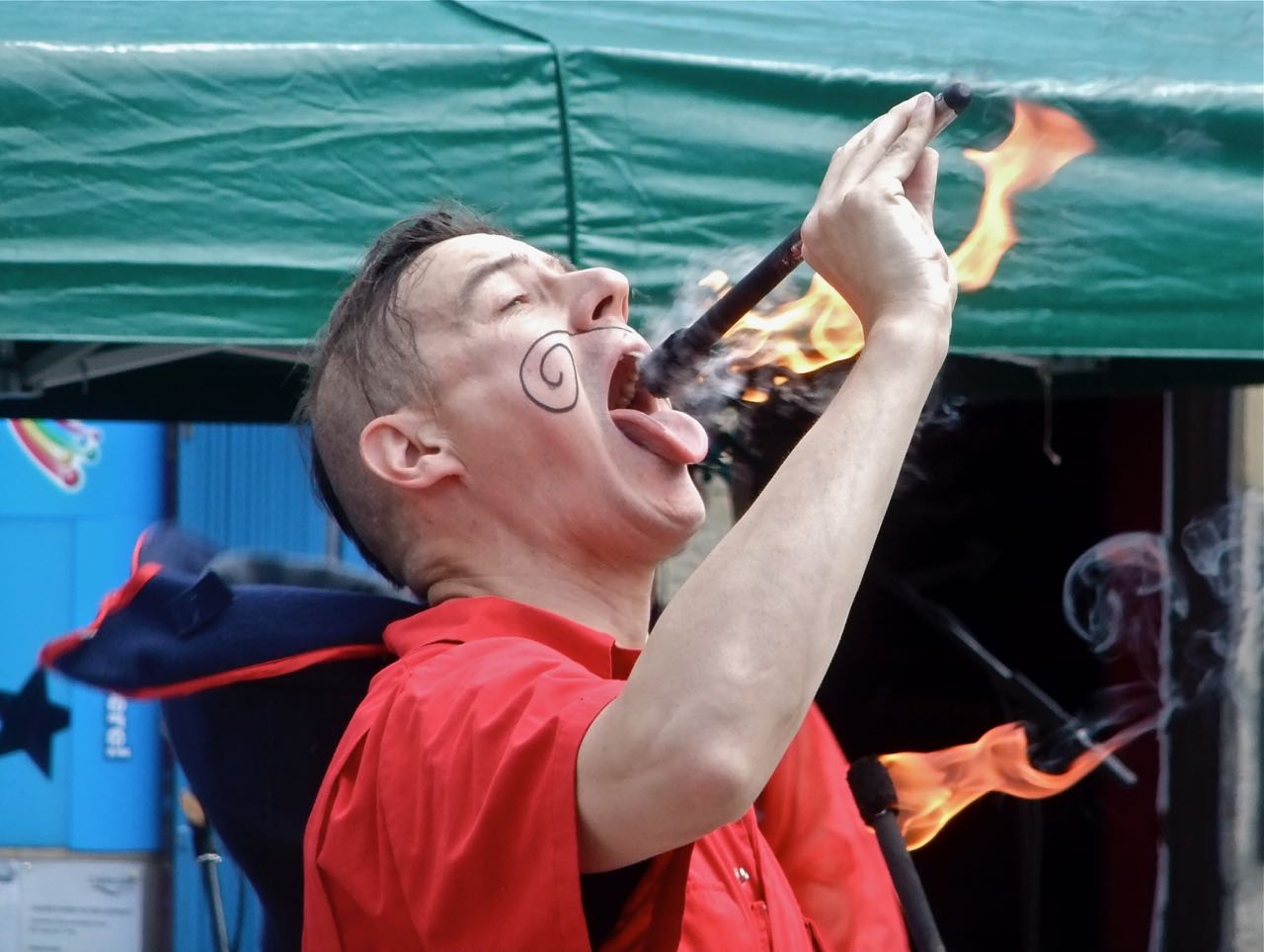 More performance: but that’s because it’s Hebden Bridge’s annual arts festival at the moment. This is the Great Mandavi – a.k.a. Dave from across the road – captured just at the moment he warms his tongue up and his hat falls off. How do you decide you can do this kind of thing, by the way? I mean, what drives you to try it that first time?