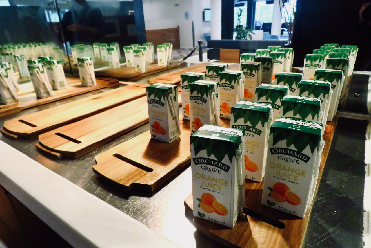 We can’t have the more resource-efficient carafes of fruit juice because that way we will get the plague, or something Then again, there seemed only three people breakfasting this morning in the hotel, like the scene in Invasion of the Body Snatchers when the main characters go out for dinner and it’s like, ‘where is everyone?’. Nah, we don’t do that kind of thing, in the anticipated future. The mirror in the background doubles up on the number of cartons, and also makes this a self-portrait, kind of.