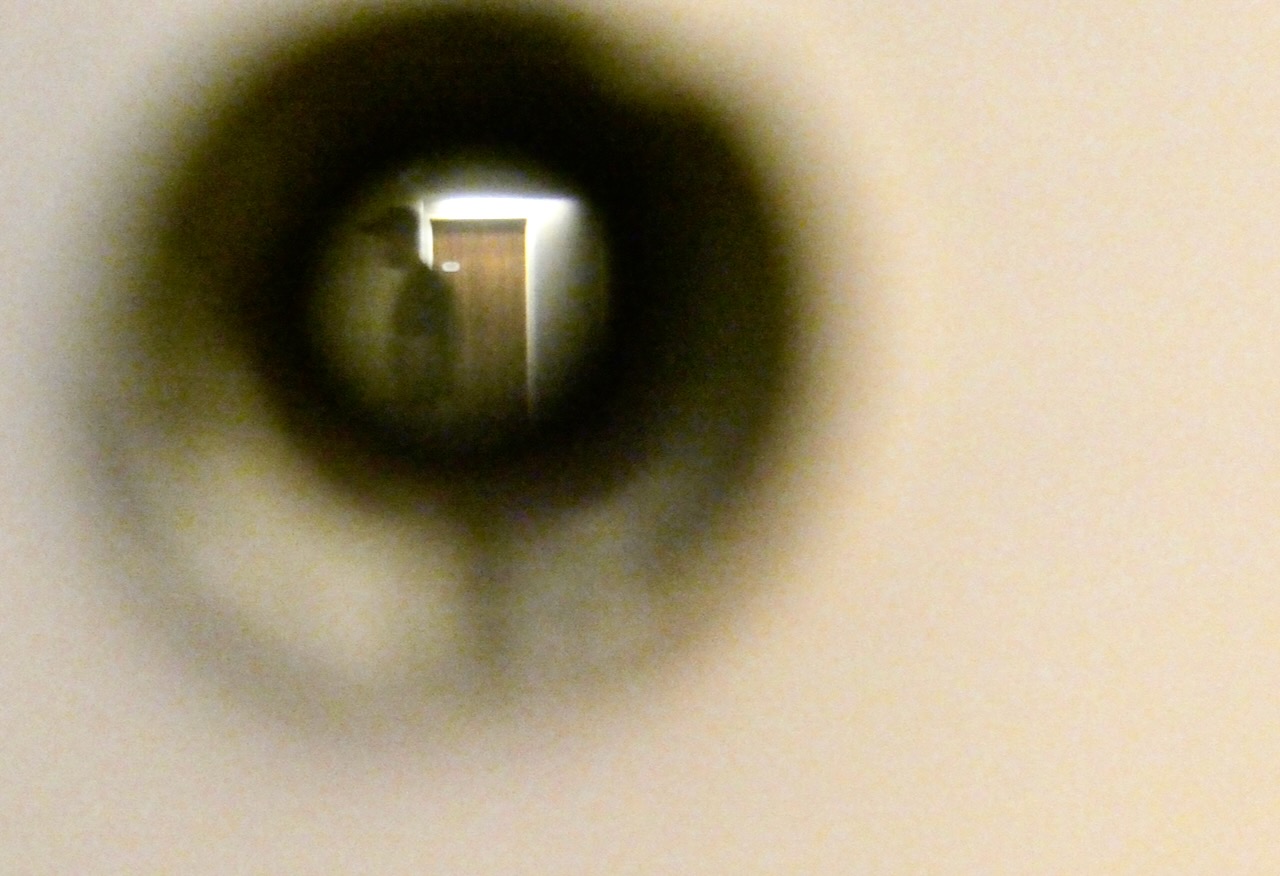 Sat in my room after work, a strange flapping noise started in the corridor outside. It must have lasted ten minutes, coming and going in volume, before my curiosity was piqued enough to have a look and see what was causing it. Turned out it was a gentleman just walking up and down the corridor in his flip-flops. Clearly someone who needed to get his step count up — yet couldn’t be bothered to go outside. Anyway, the thought then crossed my mind about trying to get this shot through the spyhole in my door: a technical challenge that means, at least, I haven’t ended up with yet another shot of Torontonian buildings. The other alternative was a cheap brown squirrel pic, so let’s run with this one.